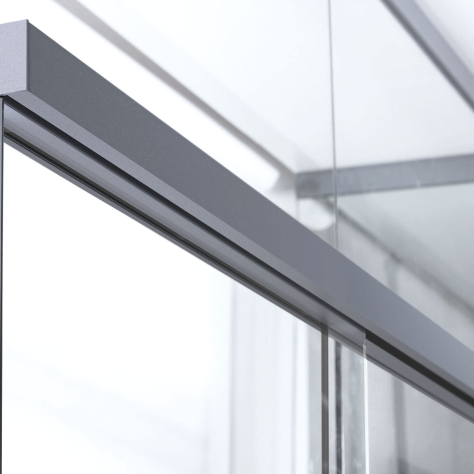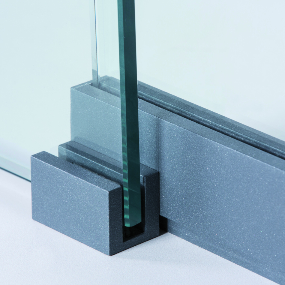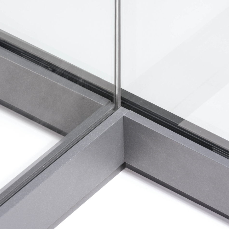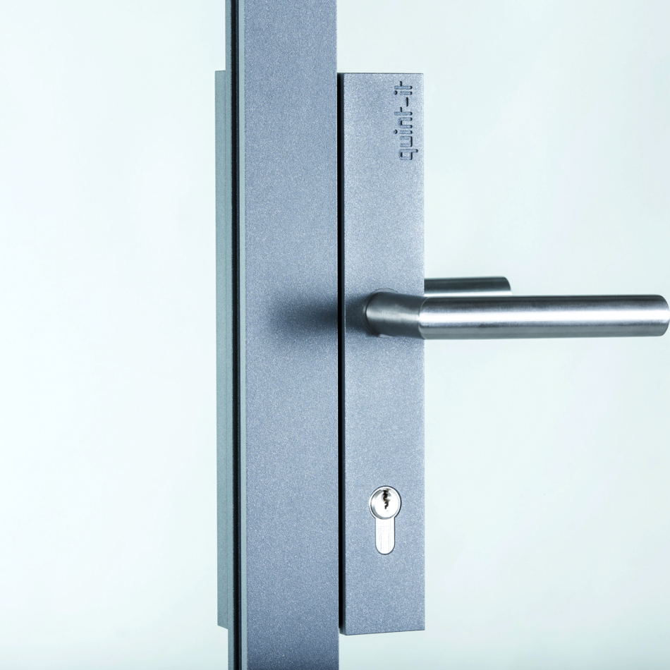 Quint-it bietet auf dem Markt für Ganzglaswände einen völlig neuen Gestaltungsansatz. Alle Profilübergänge sind flächenbündig und dank der Spezialbeschichtung in anthracite grey nahezu nicht erkennbar. Auch das durchgängige Konzept einschließlich systemkonformer Gestaltung aller Beschläge wie Schlosskasten und Bänder ist am Ganzglastrennwand-Markt bislang unerreicht.