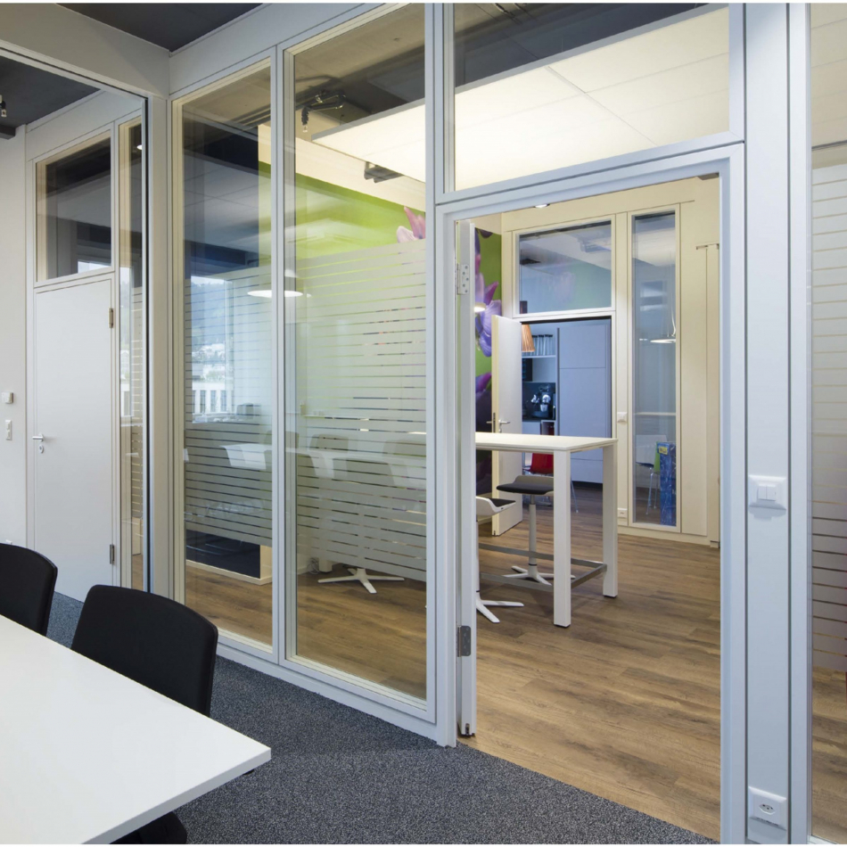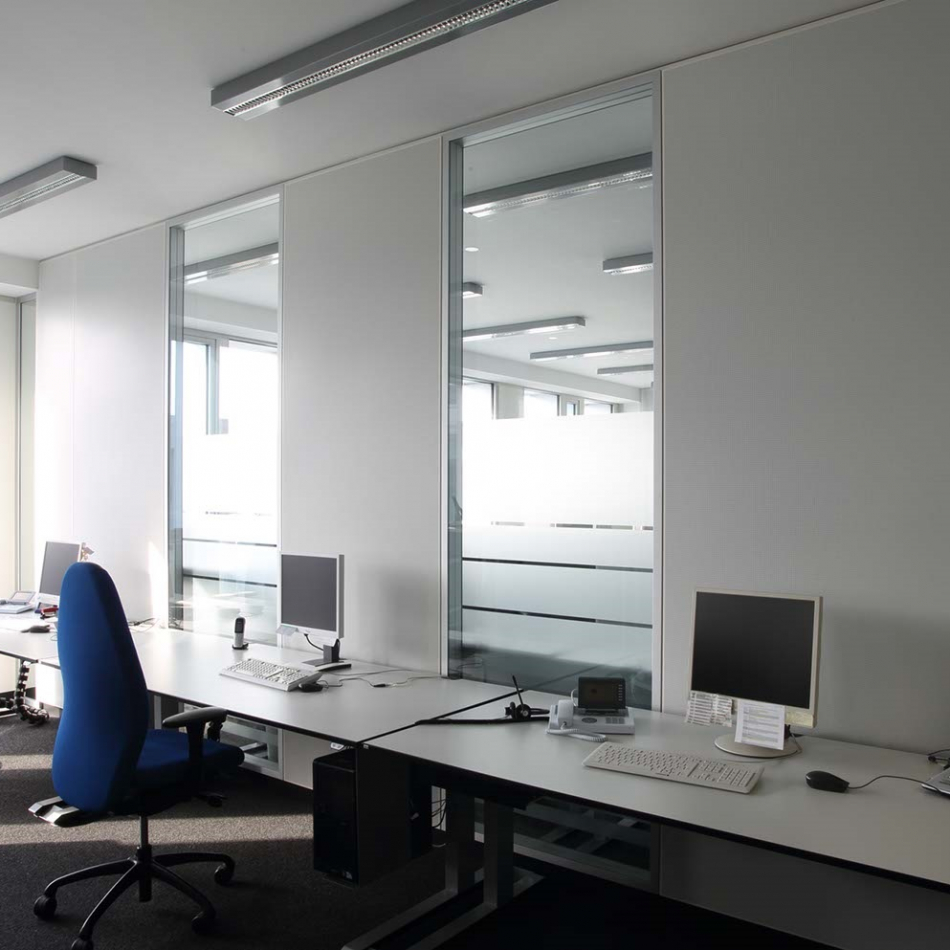 EINSATZBEREICHVerglaste Trennwandflächen mit mittlerer bis hoher Schalldämmanforderung und für gelegentlichen Umbau, erhöhte Bautoleranzen.